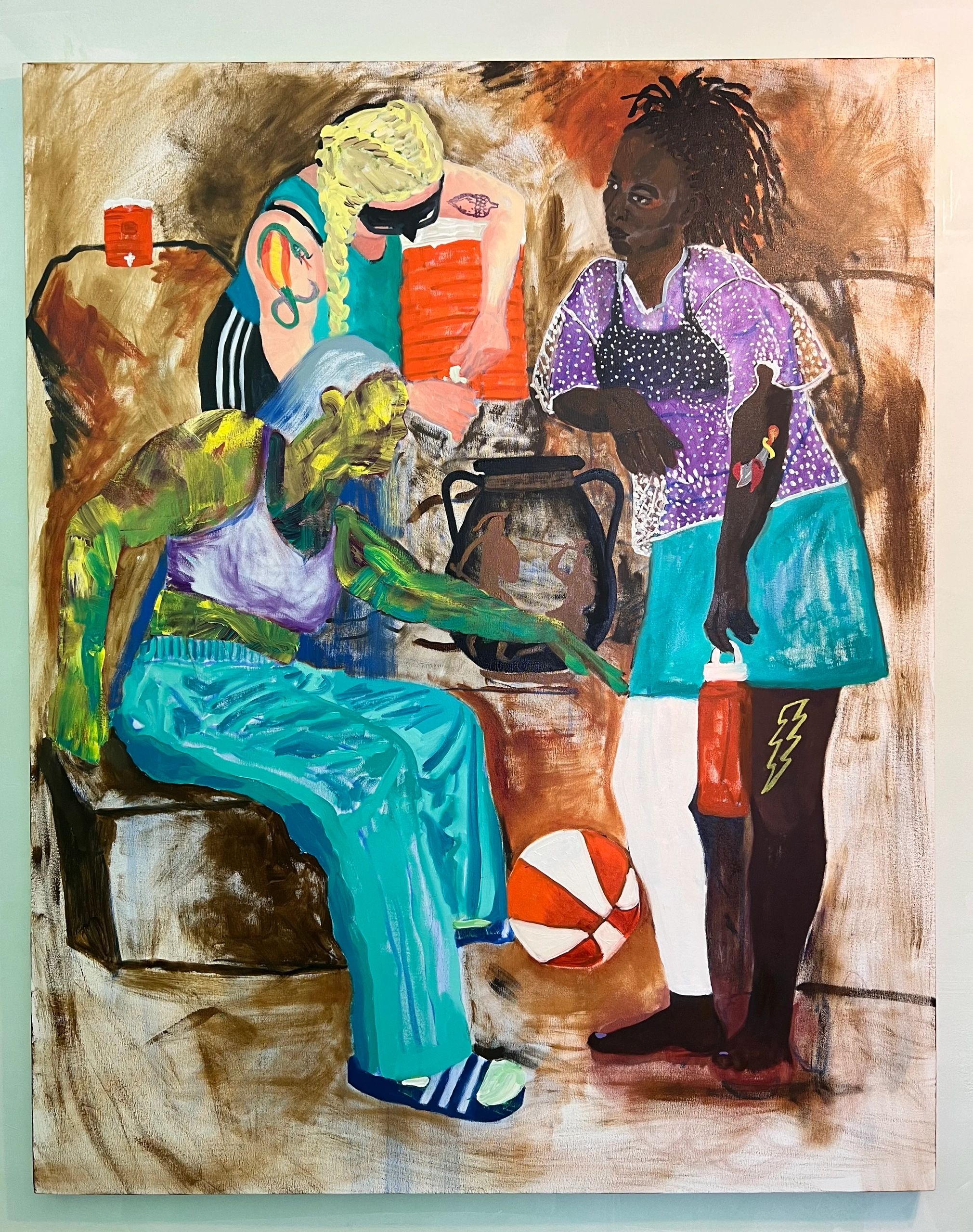 Three Women at the Spring, practice, 60x48 in., oil on canvas, 2024